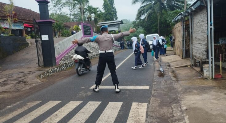 CIAMIS ~ Polsek Sukadana Polres Ciamis Polda Jabar melaksanakan kegiatan pelayanan masyarakat di pagi hari berupa pengaturan arus lalu lintas dengan sasaran anak sekolah. Kegiatan ini dilaksanakan Jalan Raya Padat Aktifitas Warga di Depan SMPN 1 Sukadana dan Perempatan Ciliat, Kecamatan Sukadana, Kabupaten Ciamis, Jawa Barat, Kamis (2/10/2025).