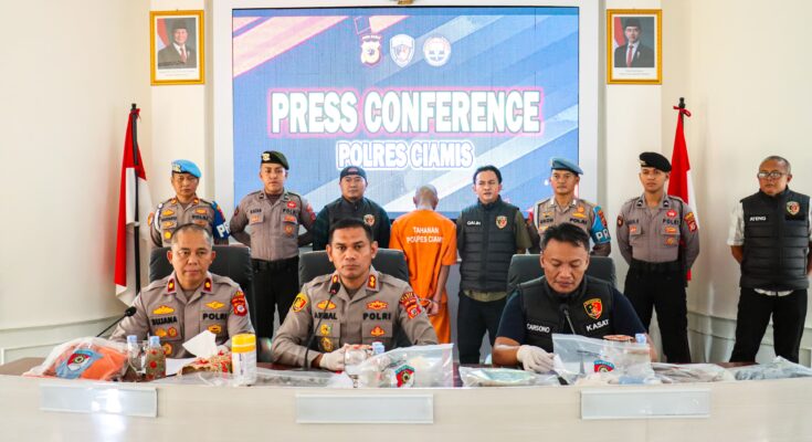 “Sebelum ditangkap, tersangka melarikan diri ke wilayah Limbangan. Disana menginap semalam di rumah rekannya. Kemudian hari Senin bergerak ke wilayah Garut. Di Garut tersangka diamankan,” ujar Kapolres Ciamis Polda Jabar AKBP Akmal, SH., S.I.K., M.H., didampingi Wakapolres Ciamis Kompol Sujana, S.Pd., dan Kasat Reskrim Polres Ciamis AKP Carsono dalam Konferensi Pers di Aula Pesat Gatra Mapolres Ciamis, Jalan Jenderal Sudirman No.271, Sindagrasa, Ciamis, Kabupaten Ciamis, Jawa Barat, Selasa (3/6/2025), petang.