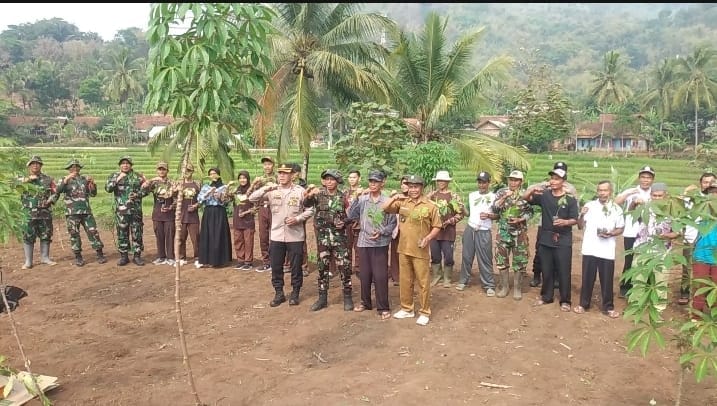 Garut | Dalam upaya mendukung program ketahanan pangan yang di gagas oleh pemerintah, Polsek Limbangan bersama Forkopincam dan sejumlah elemen masyarakat melaksanakan kegiatan penanaman pohon Sukun di Desa Simpen Kidul Kecamatan Bl Limbangan Kabupaten Garut. Jumat (15/11/2024).