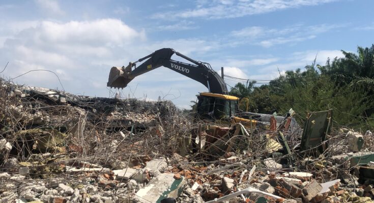 Dua unit alat berat digunakan untuk meruntuhkan pagar tembok keliling, mess karyawan, serta sebagian ruang karaoke. Hingga malam hari, sebagian besar bangunan utama berhasil dirubuhkan, meski sisanya ditunda akibat penolakan massa dan akan dilanjutkan pada esok hari.