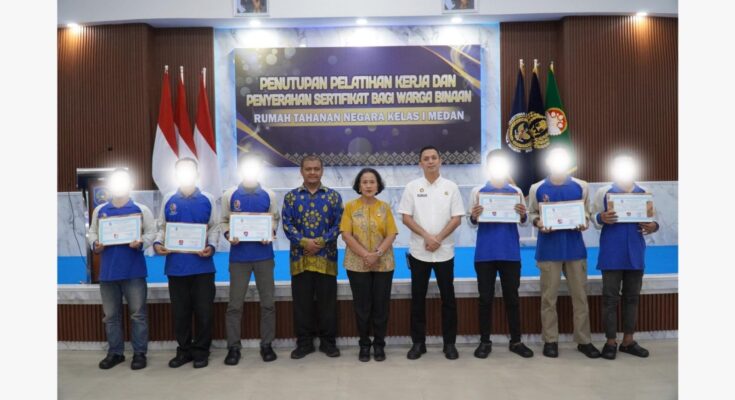Medan – Rumah Tahanan Negara (Rutan) Kelas I Medan menggelar acara penutupan sekaligus penyerahan sertifikat pelatihan kerja bagi warga binaan yang telah berhasil menyelesaikan program pelatihan kemandirian di bidang montir sepeda motor. Kamis (20/11/2025). Kegiatan ini merupakan hasil kerja sama antara Rutan Kelas I Medan dengan Dinas Ketenagakerjaan Kabupaten Deli Serdang serta Balai Latihan Kerja (BLK) Lubuk Pakam.
