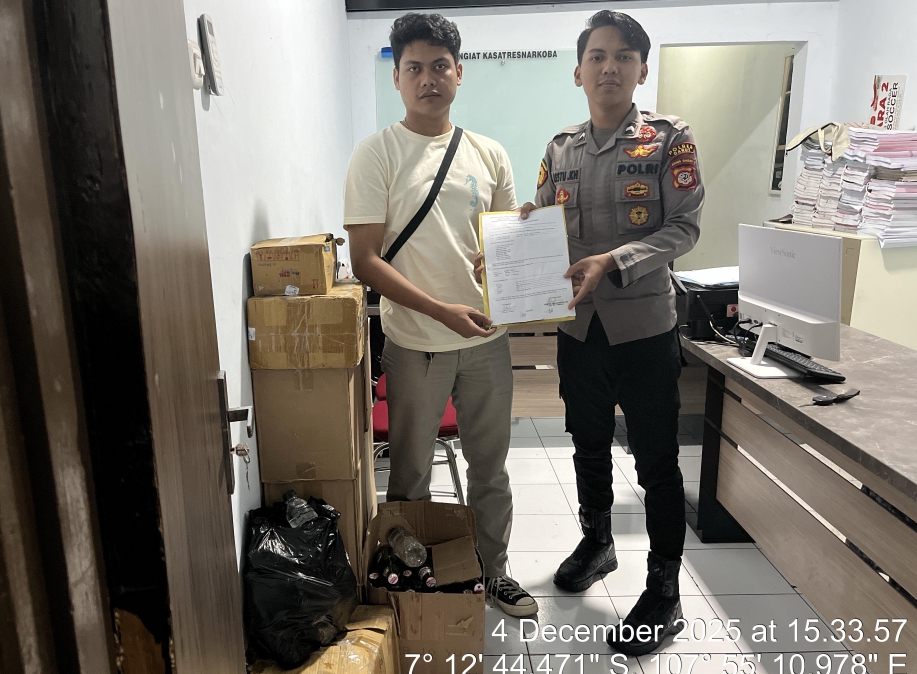 Jejak-kriminal.com-Garut Kamis 4 November 2025. Unit Reskrim dan Unit Lantas Polsek Samarang telah menyerahkan berbagai barang bukti hasil kegiatan Operasi Kepolisian Yang Ditingkatkan (KRYD) terkait peredaran minuman keras serta penggunaan knalpot tidak standar (knalpot brong). Penyerahan dilakukan kepada Sat Narkoba dan Sat Lantas Polres Garut bertempat di ruang Sat Narkoba Polres Garut.
