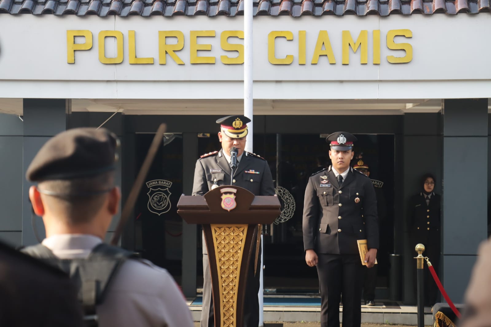 Kapolres Ciamis AKBP H. Hidayatullah, S.H., S.I.K. bertindak sebagai inspektur upacara. Upacara tersebut diikuti oleh Wakapolres Ciamis, para pejabat utama (PJU), perwira, serta personel dari berbagai satuan fungsi, mulai dari Sat Samapta, Sat Lantas, Sat Reskrim, Sat Narkoba, Sat Intelkam, hingga ASN Polres Ciamis.