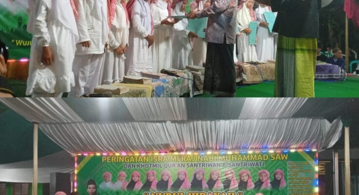 Jejak-kriminal.com, Ciamis- Mushola Nurul Hidayah RT 14/06 yang di pimpin kyai Dasimin Dusun Sambungjaya Desa Sukahurip Kecamatan Pamarican menjadi saksi suatu peristiwa sakral saat peringatan Isra’ Miraj Nabi Muhammad SAW dan Khotmil Qur’an Santriwan dan Santriwati yang memeriahkan suasana dengan kekhusyukan pembacaan Al Qur’an.” Selasa (07/01/2025)