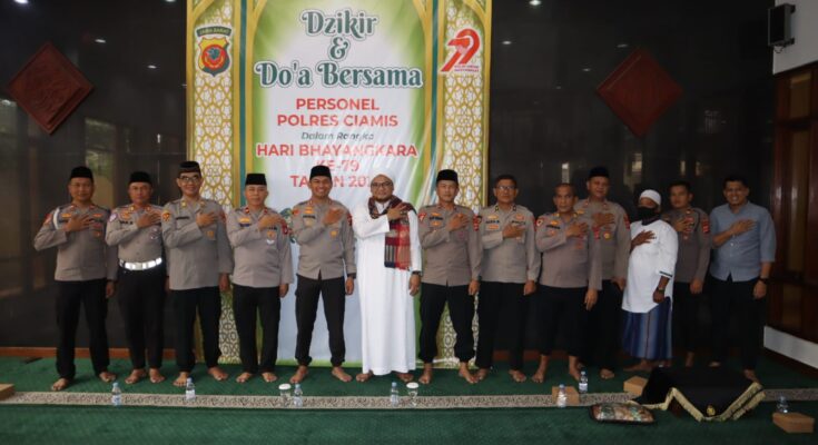 Ciamis – Dalam rangka memperingati Hari Bhayangkara ke-79, Polres Ciamis menggelar kegiatan Dzikir dan Doa Bersama yang dilaksanakan pada hari Kamis (19/6/2025), mulai pukul 08.00 WIB bertempat di Masjid Al-Hidayah Polres Ciamis. Kegiatan ini diikuti oleh seluruh jajaran Polres Ciamis, baik secara luring maupun daring, sebagai bentuk refleksi spiritual dan penguatan keimanan dalam menjalankan tugas sebagai anggota Kepolisian Negara Republik Indonesia.
