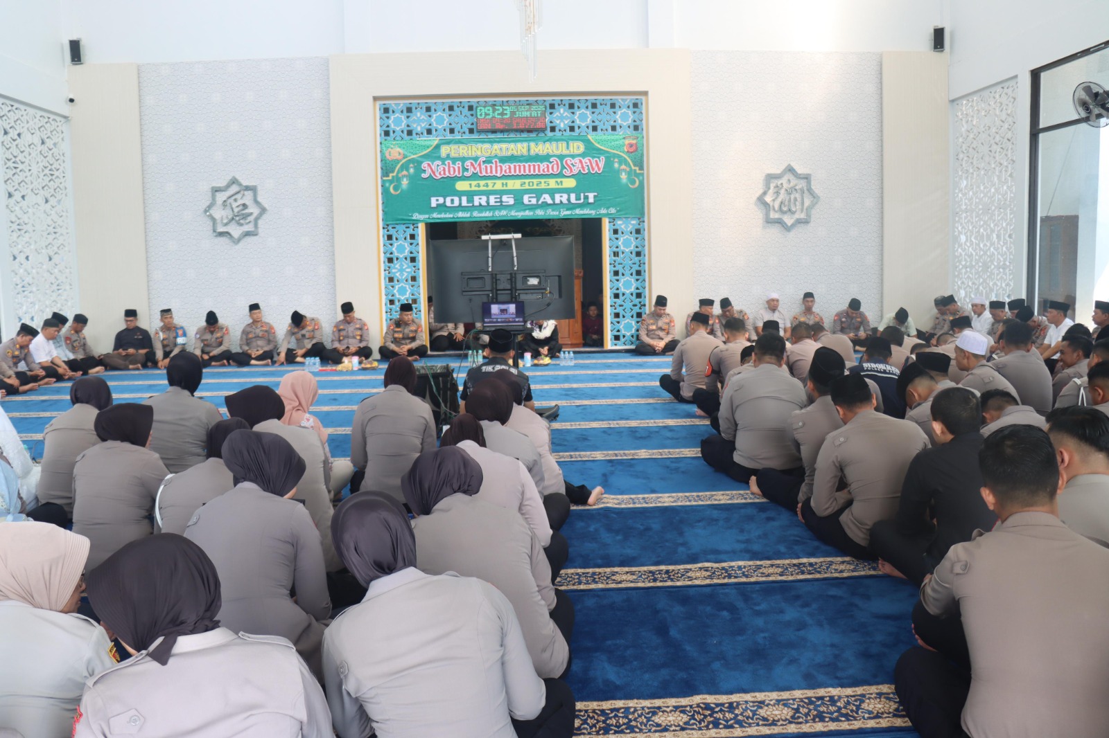 Kapolres Garut dalam sambutannya menyampaikan bahwa peringatan Maulid Nabi adalah momen penting untuk meneladani akhlak Rasulullah SAW. Beliau menekankan pentingnya menanamkan nilai-nilai kebaikan, kejujuran, dan integritas yang dicontohkan Nabi dalam setiap pelaksanaan tugas sehari-hari.