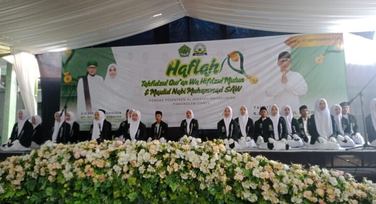 CIAMIS ~ Personel Polsek Cihaurbeuti Polres Ciamis Polda Jabar menghadiri kegiatan Wisuda Hafalah Tahfidzul Qur’an Wa Hifdzul Mutun Ponpes Al Hidayah Haurkuning. Acara itu berlangsung di Ponpes Al Hidayah Haurkuning, Desa Pamokolan, Kecamatan Cihaurbeuti, Kabupaten Ciamis, Jawa Barat, Rabu (17/9/2025).