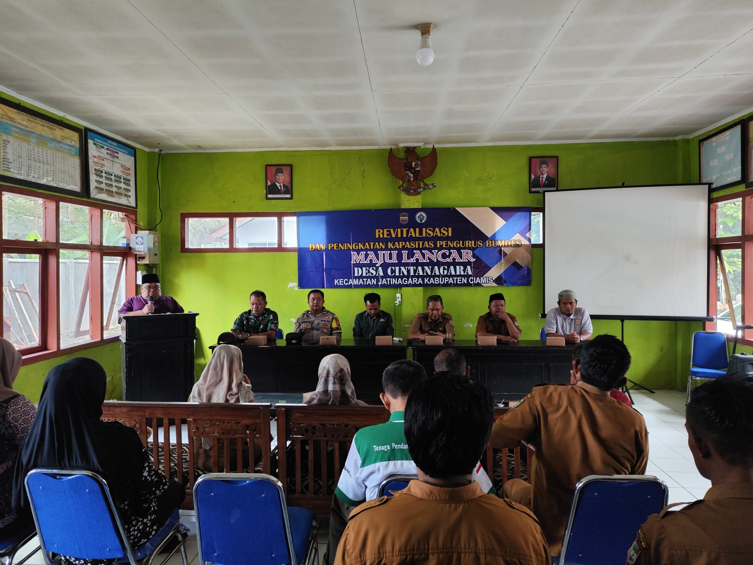 Kegiatan tersebut dilaksanakan oleh Anggota Bhabinkamtibmas Desa Cintanagara Polsek Kawali Polres Ciamis Polda Jabar. Dimana anggota secara humanis melakukan koordinasi dan komunikasi bersama kader desa yang sedang mengikuti peningkatan kapasitas.
