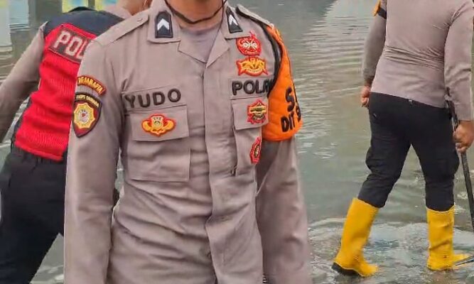 Sesampainya di lokasi, personel Ditsamapta langsung melakukan pengecekan penyebab banjir. Mereka menemukan adanya parit yang tersumbat, kemudian melakukan pembersihan agar aliran air bisa mengalir ke saluran pembuangan. Selain itu, personel juga membantu warga yang kesulitan, termasuk mendorong kendaraan yang mogok serta membantu membersihkan mesin agar bisa kembali menyala.
