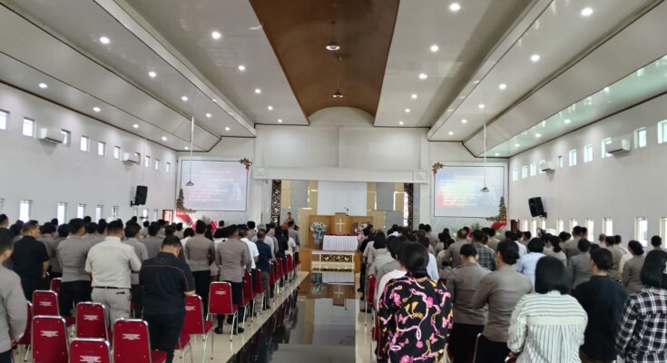 Ibadah yang dipimpin oleh Pdt. John Saragih itu berlangsung khidmat dan penuh kekhusyukan. Hadir pula para Pejabat Utama (PJU) Polda Sumut yang bersama-sama mengangkat doa untuk keamanan dan kedamaian bangsa Indonesia.