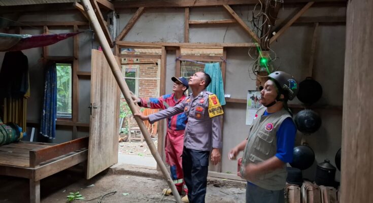CIAMIS ~ Personel Polsek Pamarican Polres Ciamis Polda Jabar mendatangi lokasi bencana pohon tumbang di Desa Bangunsari. Tepatnya terjadi di wilayah Dusun Lowasari RT 001 Rw 007, Desa Bangunsari, Kecamatan Pamarican, Kabupaten Ciamis, Jawa Barat.
