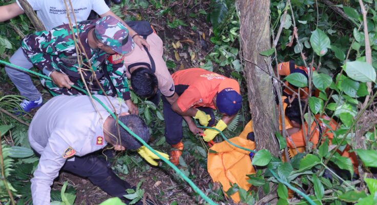 “Alhamdulillah berdasarkan penelusuran pencarian di sekitar TKP, kami berhasil temukan korban di dalam jurang kedalaman 10 meter. Ini berkat bantuan dari semua pihak, tokoh masyarakat, Tim BPBD, dan juga perangkat desa kami ucapkan terima kasih karena sudah membantu kami, kurang lebih 08.45 WIB korban ditemukan,” ucap AKBP Akmal menambahkan.