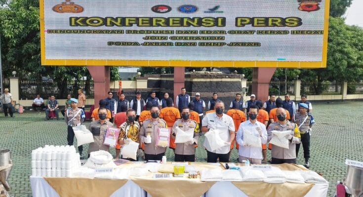 Jabar – Direktorat Reserse Narkoba Polda Jawa Barat melaksanakan konferensi Pers mengenai keberhasilan pengungkapan jaringan produksi dan peredaran obat keras ilegal di wilayah Jawa Barat, Jum’at (15/11/2024).