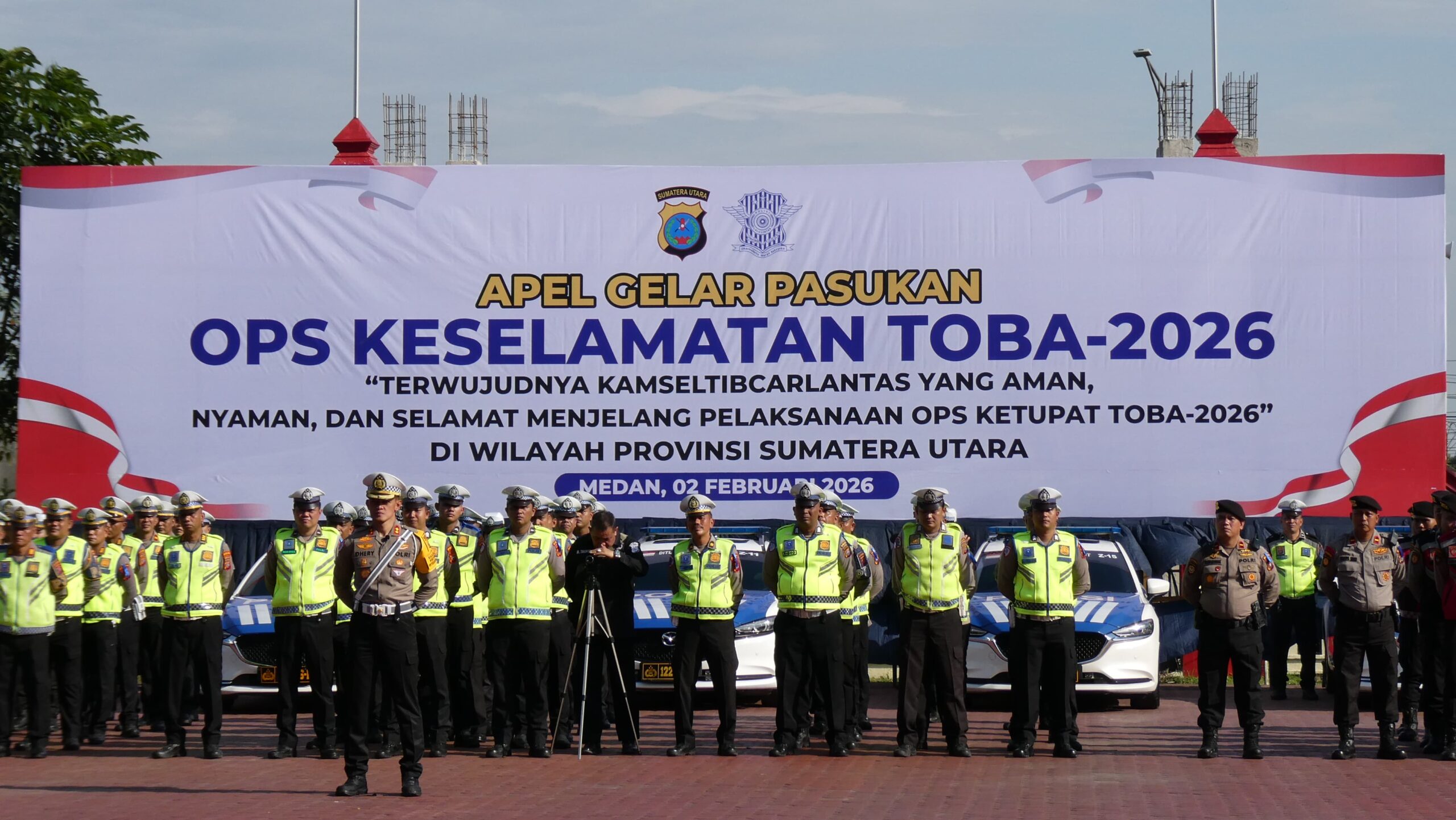 Jejak-kriminal,com//Medan — Kepolisian Daerah Sumatera Utara menggelar Apel Gelar Pasukan Operasi Kepolisian Kewilayahan “Keselamatan Toba 2026” di Lapangan KS Tubun Polda Sumut, Senin (2/2/2026). Apel ini menjadi penanda dimulainya operasi keselamatan lalu lintas yang akan berlangsung selama 14 hari, terhitung mulai 2 hingga 15 Februari 2026.