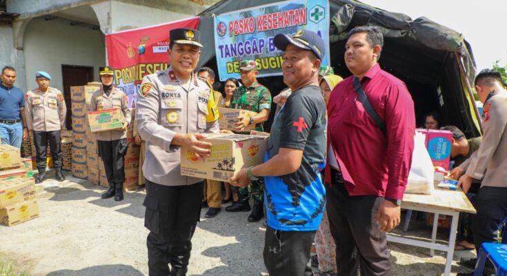 Deli Serdang — Kepedulian Polda Sumut terhadap warga yang terdampak banjir kembali dibuktikan. Pada Selasa (02/12/2025) pukul 12.00 WIB, Kapolda Sumatera Utara, Irjen. Pol. Whisnu Hermawan Februanto, S.I.K., M.H., yang diwakili oleh Wakapolda Brigjen Pol Rony Samtana, S.I.K., M.T.C.P., didampingi para Pejabat Utama Polda Sumut, turun langsung meninjau Posko Tanggap Bencana di Desa Sugiharjo, Kecamatan Batang Kuis, wilayah hukum Polresta Deli Serdang.