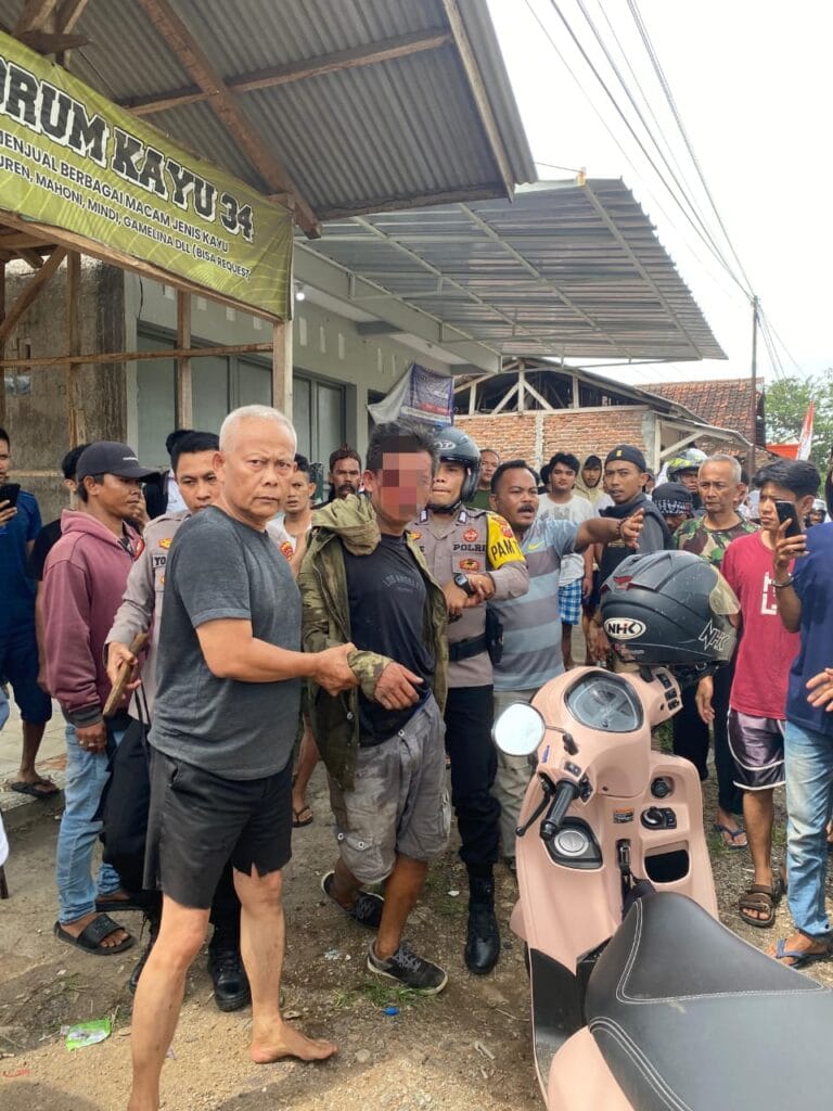 Dua anggota Polisi bersama warga dengan sigap mengejar pelaku yang mencoba melarikan diri menggunakan sepeda motor.