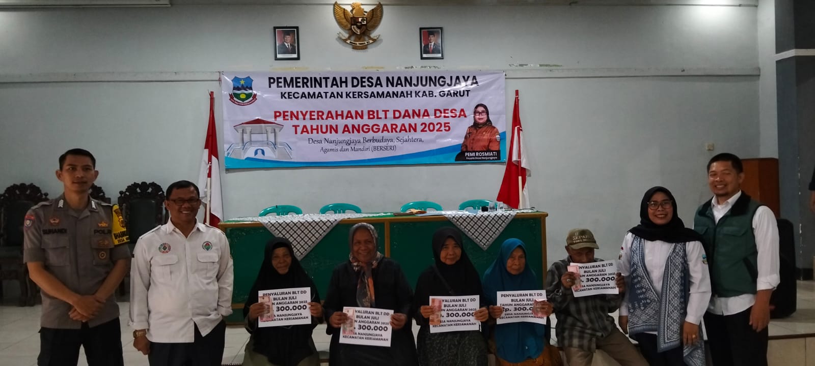 Garut – Pemerintah Desa Nanjungjaya, Kecamatan Kersamanah, Kabupaten Garut, menyalurkan Bantuan Langsung Tunai (BLT) Dana Desa bulan Juli 2024 kepada 41 Keluarga Penerima Manfaat (KPM), Rabu (30/7/2025). Masing-masing KPM menerima bantuan sebesar Rp300.000.