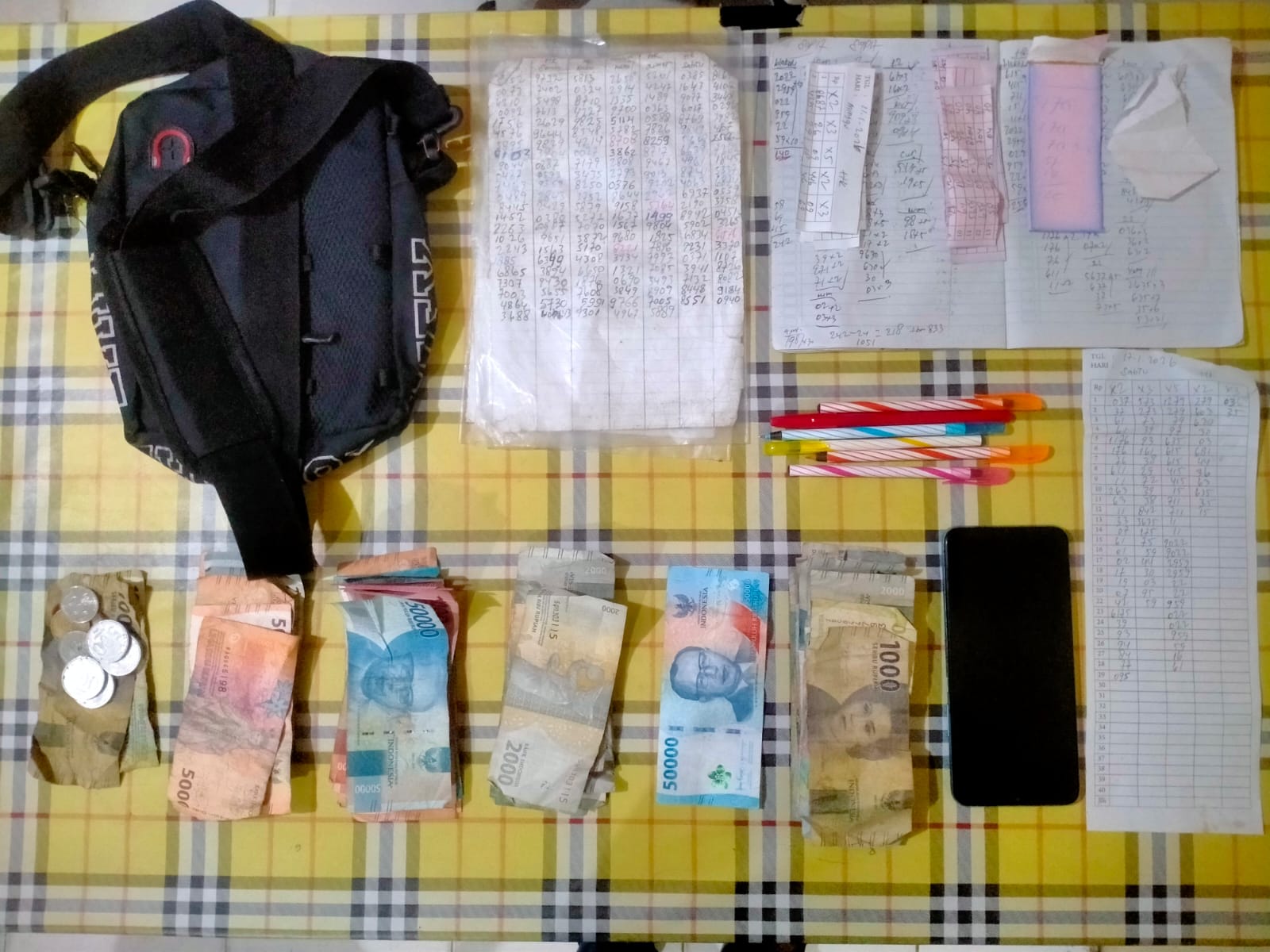 Barang bukti yang berhasil disita sangat beragam, menunjukkan aktivitas perjudian yang terorganisir. Barang bukti tersebut antara lain satu buah tas selempang, satu blok kupon togel, 13 lembar kupon pembelian togel, dua lembar kertas hasil angka keluar togel, satu buah buku tulis berisi rumus togel, satu unit handphone Android merk Infinix, satu lembar rekap pembelian togel Hongkong, serta uang tunai dengan total Rp 990 ribu dalam berbagai pecahan.