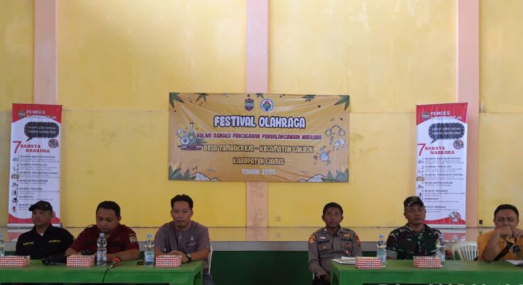 Ciamis – Polres Ciamis melalui Polsek Lakbok terus menunjukkan kepeduliannya terhadap generasi muda dengan aktif terlibat dalam kegiatan pencegahan penyalahgunaan narkoba. Bhabinkamtibmas Desa Tambakreja menghadiri sekaligus menjadi narasumber dalam kegiatan Festival Olahraga yang digelar di GOR Desa Tambakreja, Kecamatan Lakbok, Kabupaten Ciamis,t pada Minggu pagi (07/09/2025).