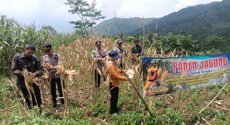 Ciamis – Kepolisian Resor Ciamis terus menunjukkan komitmennya dalam mendukung program ketahanan pangan nasional, salah satunya dengan menghadiri dan memberikan dukungan pada kegiatan panen jagung di lahan LBS (Lahan Bantuan Sosial) yang berlokasi di Dusun Kowari RT 06 RW 19, Desa Patakaharja, Kecamatan Rancah, Kabupaten Ciamis, Senin (01/09/2025).