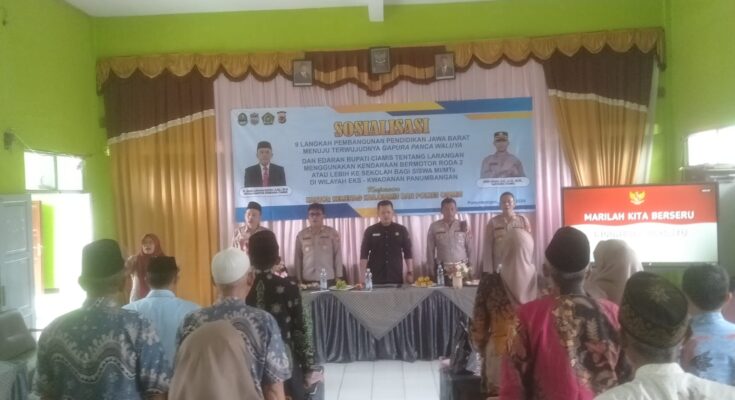 Ciamis – Dalam rangka mendukung terwujudnya sistem pendidikan yang aman, sehat, dan tertib di wilayah Kabupaten Ciamis, Satuan Binmas Polres Ciamis turut ambil bagian dalam kegiatan Sosialisasi 9 Langkah Pembangunan Pendidikan Jawa Barat menuju Gapura Panca Waluya serta Sosialisasi Surat Edaran Bupati Ciamis terkait larangan pelajar membawa kendaraan bermotor ke sekolah. Kegiatan ini berlangsung pada Kamis (19/6/2025), mulai pukul 08.30 WIB hingga selesai, bertempat di MTs Negeri 3 Ciamis, Kecamatan Panumbangan.