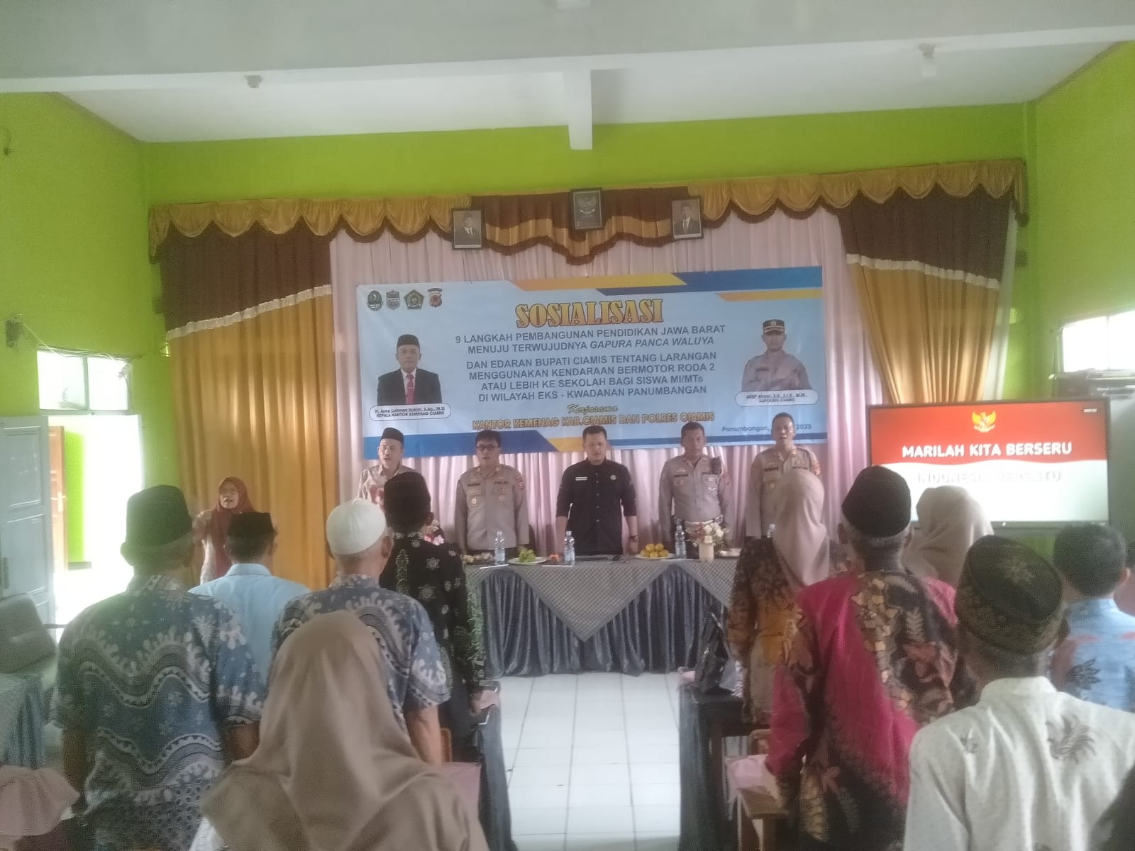 Kegiatan yang dihadiri sekitar 150 peserta ini melibatkan berbagai unsur seperti Kepala Kantor Kemenag Ciamis, Kepala Sekolah, para guru, serta unsur Forkopimcam, termasuk Kasat Binmas Polres Ciamis AKP Rahmat Komara, S.H., M.M., dan KBO Satlantas Polres Ciamis IPTU Andy Saleh.