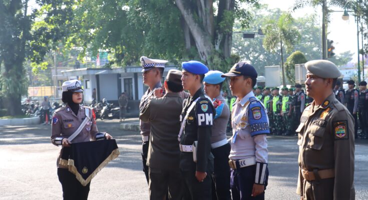 Adapun peserta apel terdiri dari berbagai unsur satuan pengamanan, termasuk TNI-Polri, Satpol PP, Damkar, BPBD, Dinas Perhubungan, PMI, serta gabungan kendaraan taktis dari masing-masing instansi.