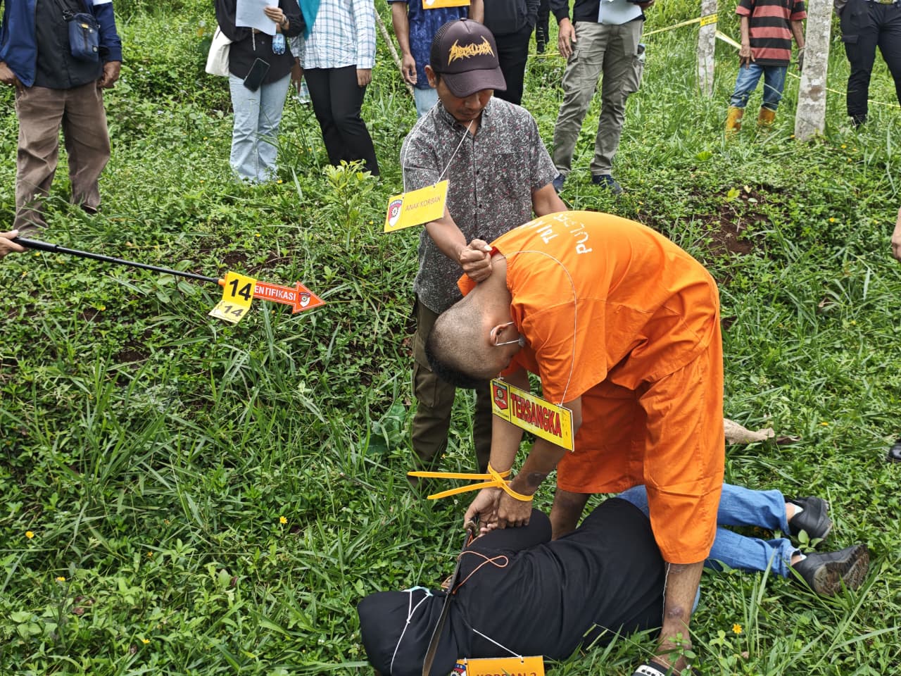 Rekonstruksi melibatkan tersangka FNP, seorang pemuda berusia 20 tahun yang diduga dalam kondisi depresi saat melakukan tindak kekerasan yang menyebabkan korban luka berat, luka ringan, hingga meninggal dunia. Aparat menyusun 23 adegan guna mengungkap runtutan aksi pelaku yang mengakibatkan empat korban, yaitu Idan Ramdani dan Salni yang mengalami luka berat, seorang anak bernama Muiz Syahril yang mengalami luka ringan, serta Yayah, kakak pelaku, yang meninggal dunia. Adegan demi adegan dilakukan sesuai fakta penyidikan agar seluruh unsur peristiwa dapat diyakini secara hukum.