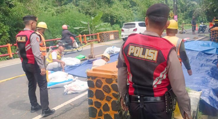 Ciamis – Kepolisian Resor Ciamis melalui Satuan Samapta menunjukkan aksi tanggap darurat dalam menangani peristiwa tanah longsor yang terjadi di sekitar Jembatan Cikaleho, Kecamatan Cipaku, Kabupaten Ciamis. Peristiwa ini sempat mengancam akses jalan utama di wilayah tersebut. Dalam waktu singkat, petugas kepolisian bersama tim dari BPBD Ciamis turun langsung ke lokasi untuk melakukan penanganan awal serta memastikan keamanan masyarakat di sekitar titik longsor. Kejadian ini berlangsung pada Sabtu (08/11/2025).
