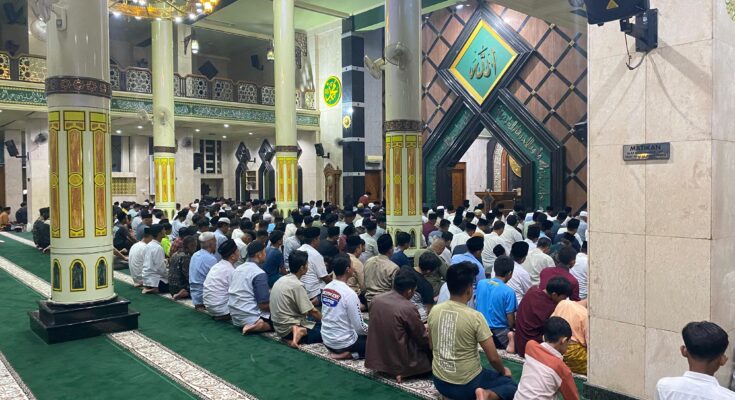 Ciamis – Jajaran Polres Ciamis turut menghadiri kegiatan buka bersama, shalat tarawih berjamaah serta peringatan Nuzulul Quran tingkat Kabupaten Ciamis yang dilaksanakan di Masjid Agung Ciamis sebagai bagian dari upaya mempererat sinergi antara pemerintah, tokoh agama, dan masyarakat selama bulan suci Ramadhan pada Minggu malam (08/03/2026).