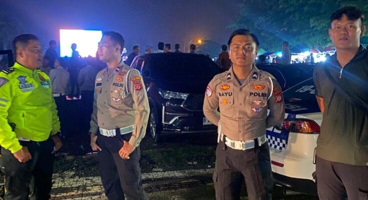 Tampak terlihat sejumlah personel Polri melakukan pengamanan di sekitar lokasi acara yang dihadiri oleh pasangan calon Bupati dan Calon Wakil Bupati Ciamis Nomor Urut 2 H. Herdiat Sunarya dan H. Yana D. Putra.