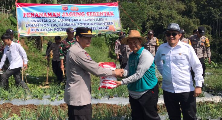 Garut – Dalam rangka mendukung program nasional Swasembada Pangan 1 Juta Ton Jagung Tahun 2025, Polres Garut bersama seluruh Polsek jajaran melaksanakan penanaman jagung secara serentak di berbagai wilayah Kabupaten Garut, Kamis (07/08/2025).