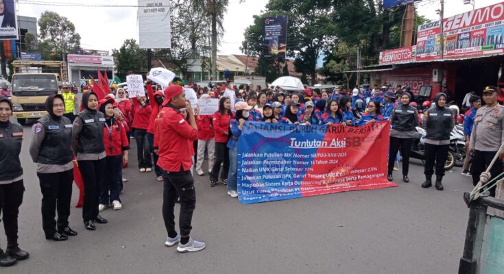 Garut – Dalam rangka mengawal jalannya aksi unjuk rasa dan audiensi dari Aliansi Buruh Garut Bersatu yang digelar pada Rabu (12/11/2025), Polres Garut menampilkan pengamanan dengan pendekatan humanis.