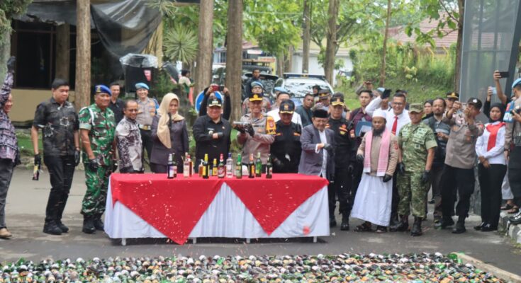 “Sebanyak 3.954 botol minuman keras berbagai merek kami musnahkan. Barang bukti tersebut merupakan hasil dari razia dan operasi penyakit masyarakat yang dilaksanakan sejak bulan Mei hingga Desember 2025,” ujar Kapolres Garut.