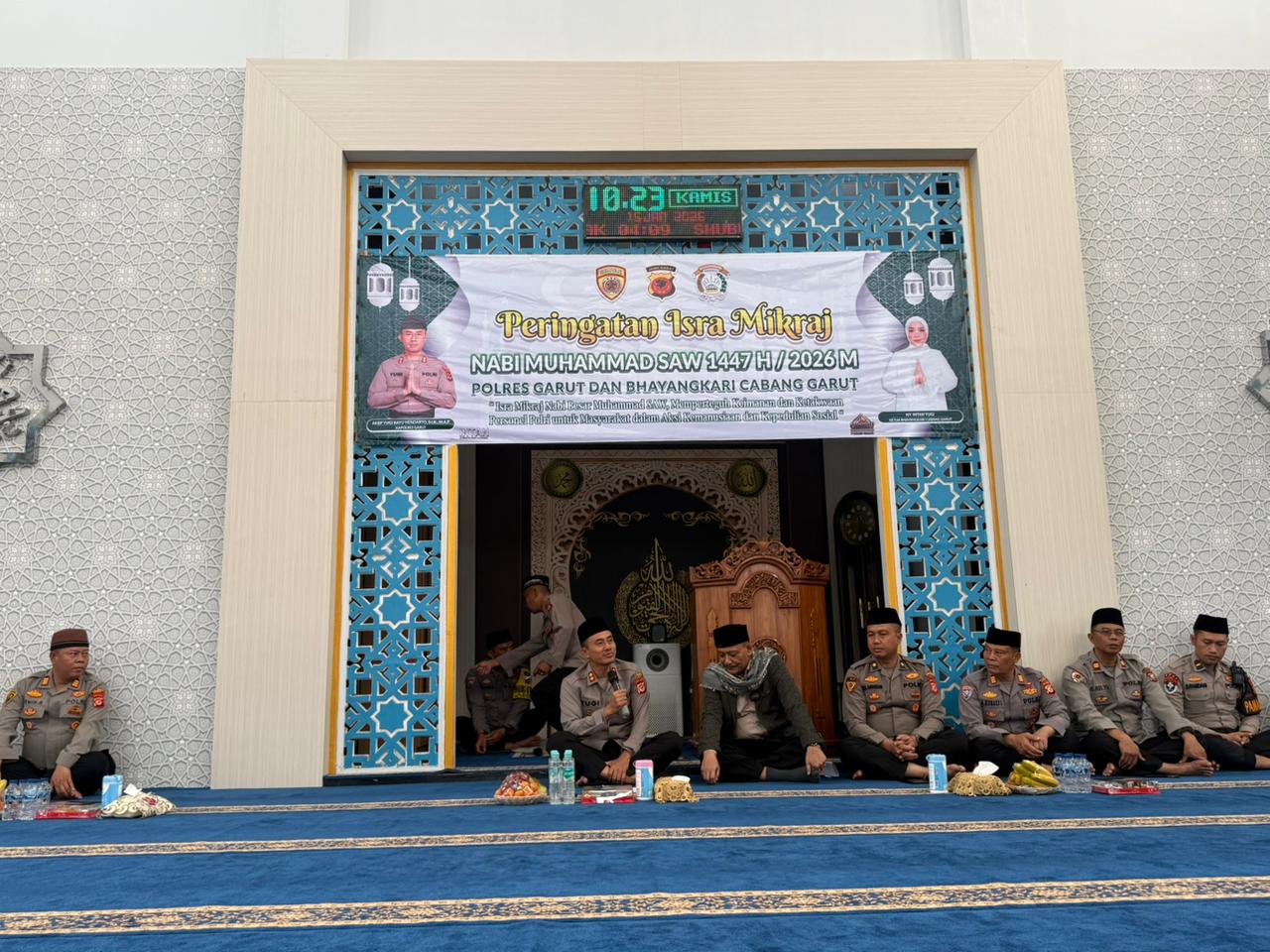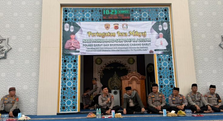 Garut – Polres Garut menggelar kegiatan Peringatan Isra Mikraj Nabi Muhammad SAW Tahun 1447 Hijriah/2026 Masehi tingkat Polres Garut, yang berlangsung khidmat di Masjid Nurul Hakim Polres Garut, Kamis (15/1/2026) pagi.