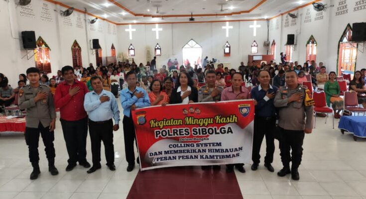 SIBOLGA – Dalam rangka menciptakan dan memelihara situasi Keamanan dan Ketertiban Masyarakat (Kamtibmas) yang aman dan kondusif di wilayah Kota Sibolga, Polres Sibolga melaksanakan kegiatan Minggu Kasih dengan menyampaikan himbauan serta pesan-pesan Kamtibmas kepada masyarakat, khususnya jemaat gereja.