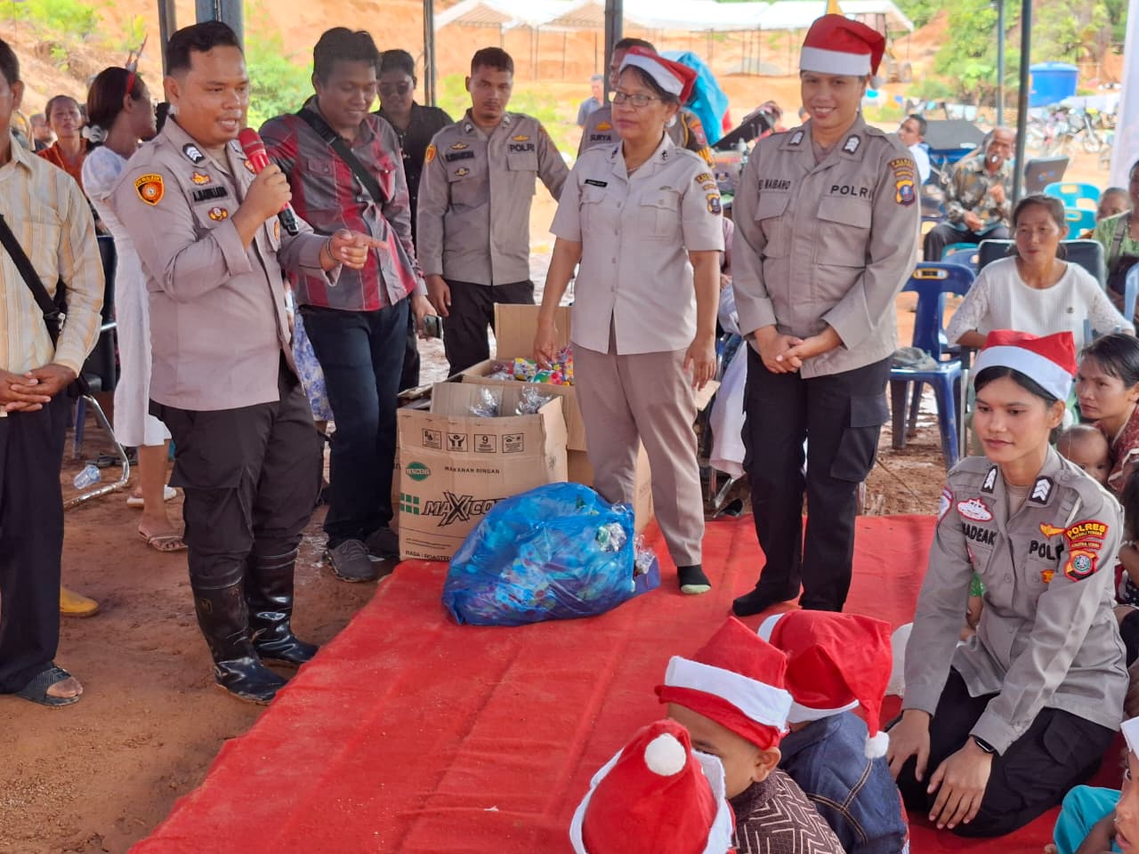 Tapanuli Tengah – Polres Tapanuli Tengah kembali menunjukkan kepedulian dan kehadirannya di tengah masyarakat terdampak bencana alam dengan memfasilitasi Perayaan Natal bersama para pengungsi di Posko Pengungsian Simpang Sipange, Hutanabolon, Kelurahan Tukka, Kecamatan Tukka, Kabupaten Tapanuli Tengah, Kamis (25/12/2025) pagi.