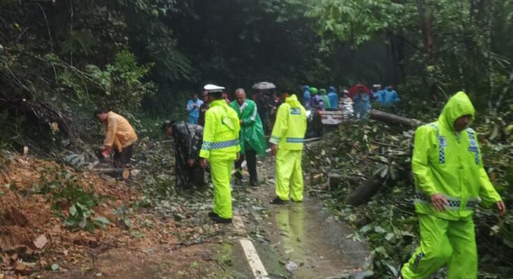 Sejumlah ruas jalan nasional sempat tertutup total, namun beberapa titik sudah berhasil dibuka setelah alat berat diturunkan sejak dini hari.