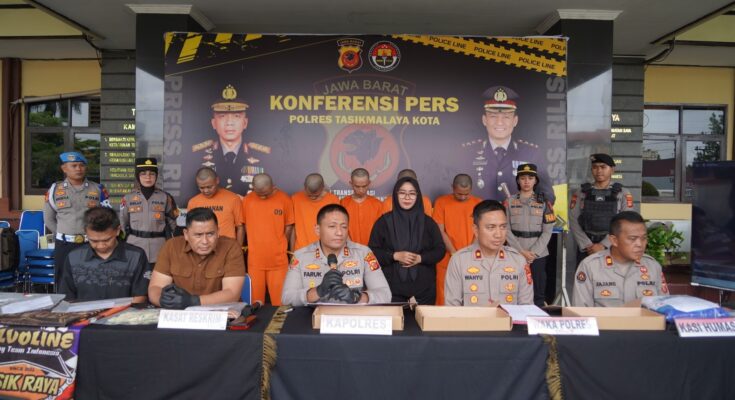 Polres Tasikmalaya Kota – Jajaran Sat Reskrim Polres Tasikmalaya Kota berhasil mengungkap dua tindak pidana yang terjadi di wilayah hukum Polres Tasikmalaya Kota, yaitu kasus penganiayaan secara bersama-sama di Kecamatan Kawalu serta kasus kepemilikan senjata tajam tanpa hak di Kecamatan Cihideung. Press release dipimpin oleh Kapolres Tasikmalaya Kota AKBP Moh. Faruk Rozi, S.H., S.I.K., M.Si., didampingi Kasat Reskrim dan jajaran penyidik Sat Reskrim, Rabu (05/11/2025).