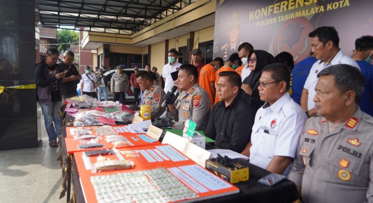 Tasikmalaya kota,Jejak-kriminal.com-Polres Tasikmalaya Kota kembali menunjukkan komitmennya dalam memberantas peredaran narkotika dan penyalahgunaan obat keras terbatas di wilayah hukumnya. Dalam konferensi pers yang digelar, Kapolres Tasikmalaya Kota AKBP Moh. Faruk Rozi, S.H., S.I.K., M.Si. memimpin langsung jalannya press release, didampingi Kasat Reskrim Herman Saputra, S.H., M.H., Ketua MUI KH. Ahmad Bustomi, serta Anggara M. Khadafi, S.H.pada hari Selasa 20 mei 2025 siang.