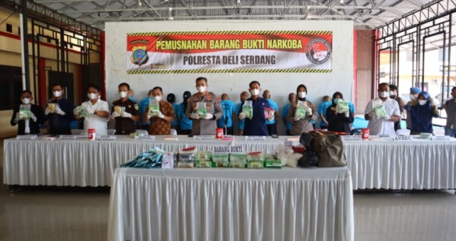 Kapolresta Deli Serdang Kombes Pol Hendria Lesmana menjelaskan, barang bukti yang dimusnahkan berasal dari 9 kasus narkotika dengan total 12 tersangka, dua di antaranya perempuan.