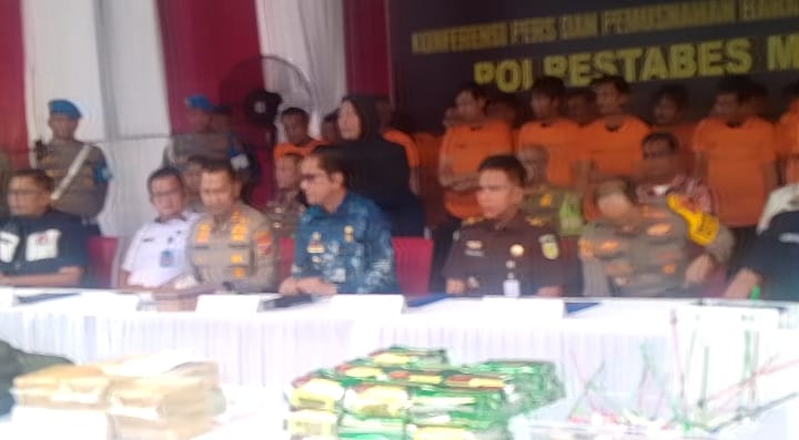 “42 hari kerja petugas Satuan Reserse Narkoba Polrestabes Medan memusnahkan narkoba senilai 50 miliar, ” ucap Kapolrestabes Medan Kombes Pol Jean Calvijn Simanjuntak didampingi Walikota Medan Rico Tri Putra Bayu Waas, Waka Polrestabes AKBP Rudy Silaen, Kasat Narkoba Kompol Raffl Yusuf Nugraha, BNNK Deli Serdang, Kejari Medan, Bea Cukai, Dandim 02/01 dan pejabat teras lainnya, Kamis (20/11/2025).