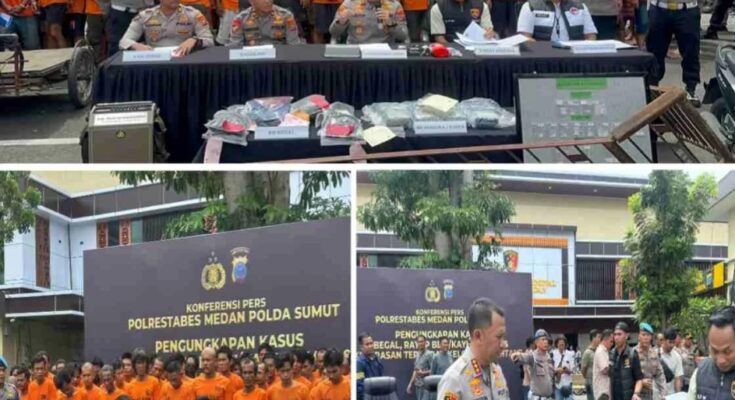 Medan-Jejak-kriminal com/ Beri rasa Aman kepada Masyarakat, Polrestabes Medan berhasil mengungkap 61 kasus berbagai tindak kejahatan yang terdiri dari begal, “rayap besi”, “rayap kayu” dan pompa (sabu). Dari 61 kasus yang berhasil diungkap, tim juga berhasil meringkus 87 orang tersangka.
