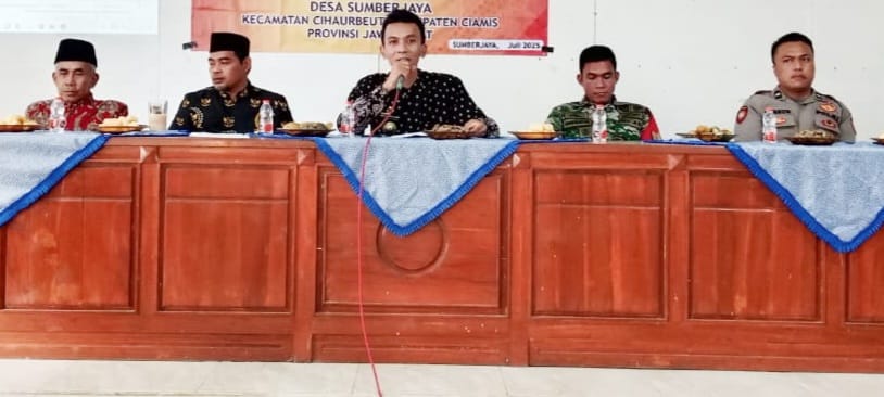 Dalam kegiatan tersebut, Bhabinkamtibmas Desa Sumberjaya, Aipda Narkun, hadir mewakili institusi Polri untuk memastikan pelaksanaan sosialisasi berjalan aman, tertib, serta mendukung pesan-pesan pembangunan dan kesejahteraan bagi masyarakat desa.