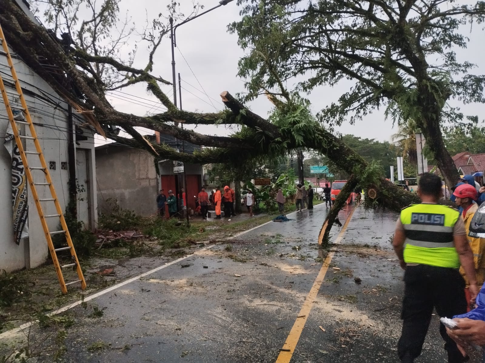 “Peristiwa itu terjadi karena kondisi pohon tak kuat menahan hantaman intensitas hujan cukup tinggi sehingga tumbang menghantam tempat penggilingan padi dan kabel listrik. Kami ikut bergotong bersama warga untuk menyingkirkan material pohon tumbang dan pengaturan lalu lintas,” kata dia dalam keterangan resminya, Kamis (25/12/2025).