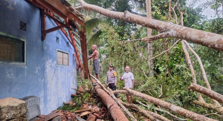 Mengetahui peristiw itu, Anggota Polsek Sukadana Polres Ciamis Polda Jabar bergegas mendatangi TKP setelah mendapatkan informasi dari masyarakat. Mereka hadir dan membantu proses penanggulangan bencana alam pohon tumbang menimpa bagian rumah warga.