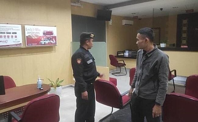 Selama pelaksanaan patroli, personel Sat Samapta Melakukan dialog dengan petugas keamanan Bank BSM untuk memastikan situasi tetap terkendali.