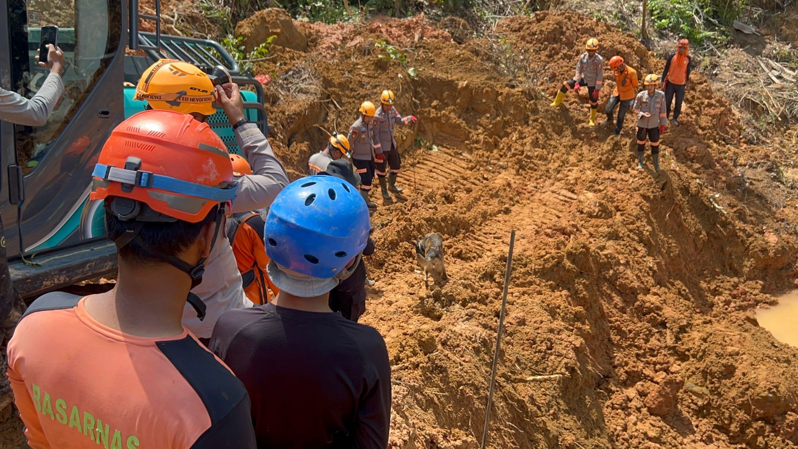 Sebanyak empat ekor Satwa K-9 spesialis SAR, yakni Dassa, Rubin, Ari, dan Walet, dikerahkan untuk melakukan pelacakan area yang diduga menjadi titik tertimbunnya korban. Hasil pelacakan anjing SAR tersebut menjadi acuan penting dalam menentukan lokasi penggalian oleh alat berat yang digunakan tim gabungan.