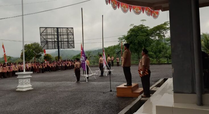 CIAMIS ~ Personel Polsek Banharsari Polres Ciamis Polda Jabar menghadiri dan mengikuti upacara peringatan bendera merah putih dalam rangka peringatan Hari Pramuka ke-64 tingkat Kwartir Ranting Banjarnayar. Upacara ini berlangsung di halaman Kantor Kecamatan Banjaranyar, Desa Banjaranyar, Kecamatan Banjarnyar, Kabupaten Ciamis, Jawa Barat, Kamis (14/8/2025).