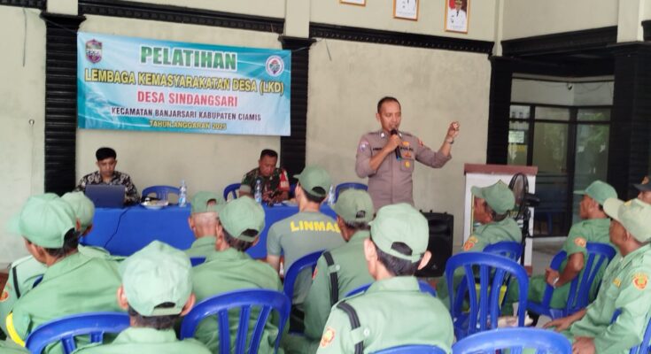 Penyampaian materi pembinaan dari kepolisian disampaikan oleh Kapolsek Banjarsari Polres Ciamis Polda Jabar AKP Rahmad Fanani. Dimana anggota secara humanis melakukan koordinasi dan komunikasi bersama anggota Linmas di Desa Sindangsari terkait pembinaan dalam rangka menjaga keamanan dan ketertiban.